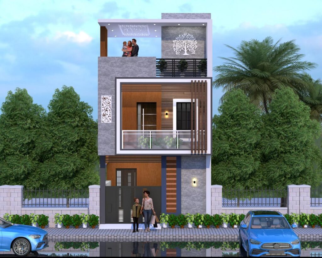 A sleek and compact duplex designed for urban families, featuring smart interiors, natural lighting, and a clean elevation that blends comfort with style.